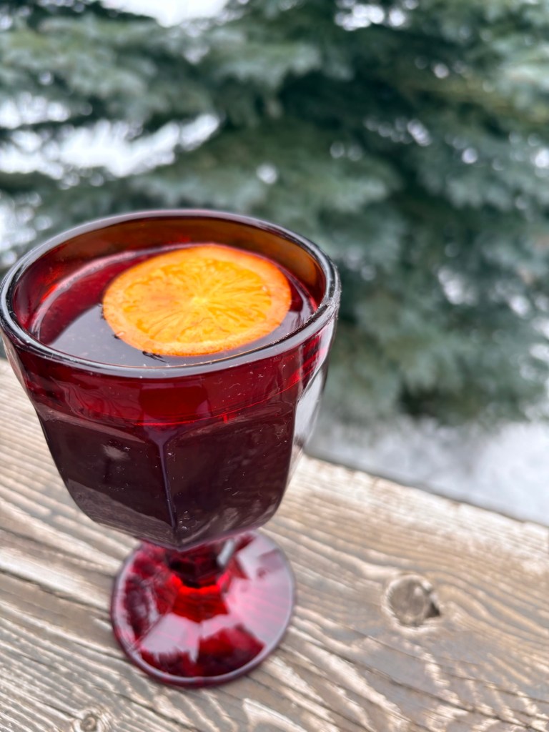 The joy of a beautiful red glass, brimming with red wine mulled in exotic spices, slice of fresh Spanish orange. Blessed beyond measure to be fortunate enough to have this beautiful delight today.